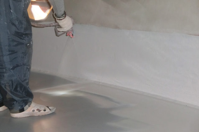 モルタル壁にローラーやコテで塗りつける、もしくは薄めてスプレーで吹き付ける工法を取ります。